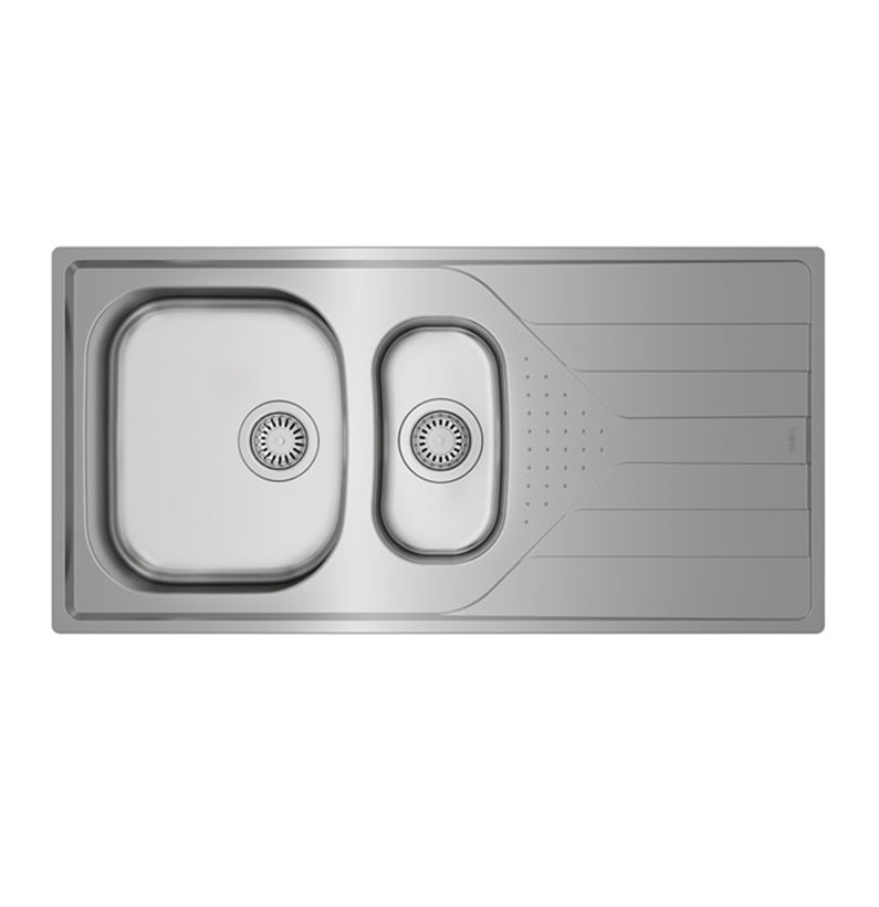 - Stainless steel sink, One bowl, one auxiliary bowl, and one drainer